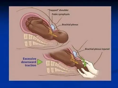 Occurs during excessive pulling on the shoulders at delivery when the baby is disproportionately bigger than the birth canal
